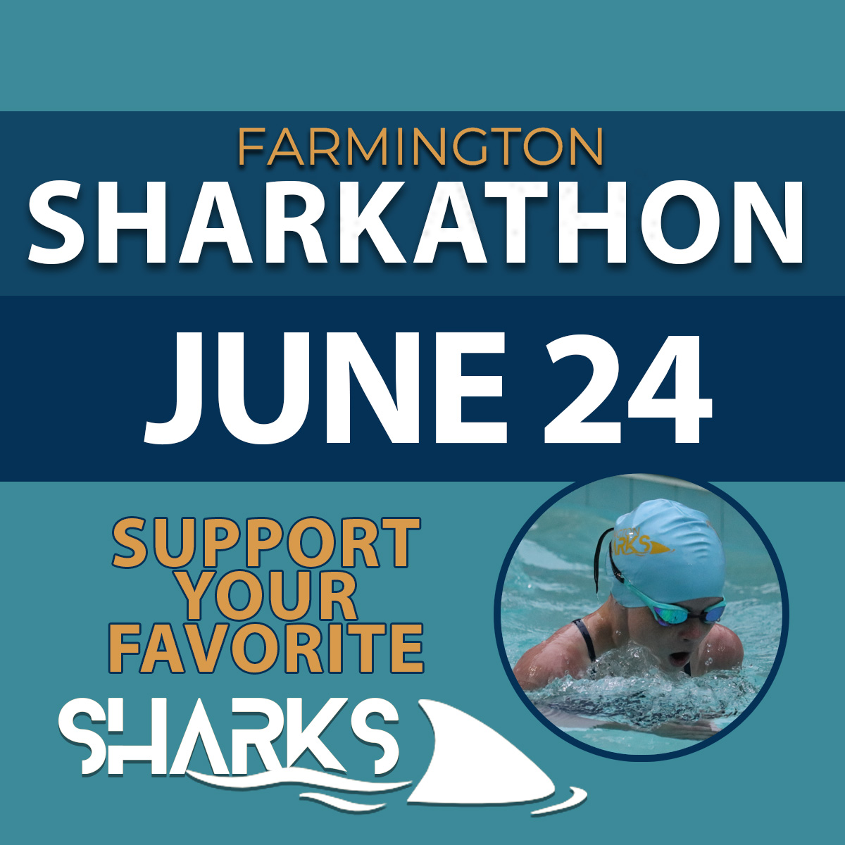 A Sharkathon is a fun and active way to raise money for our team! Swimmers collect pledges from friends, family, and supporters—either per lap swum or as a flat donation. Then, on event day, they swim as many laps as they can in a set time.